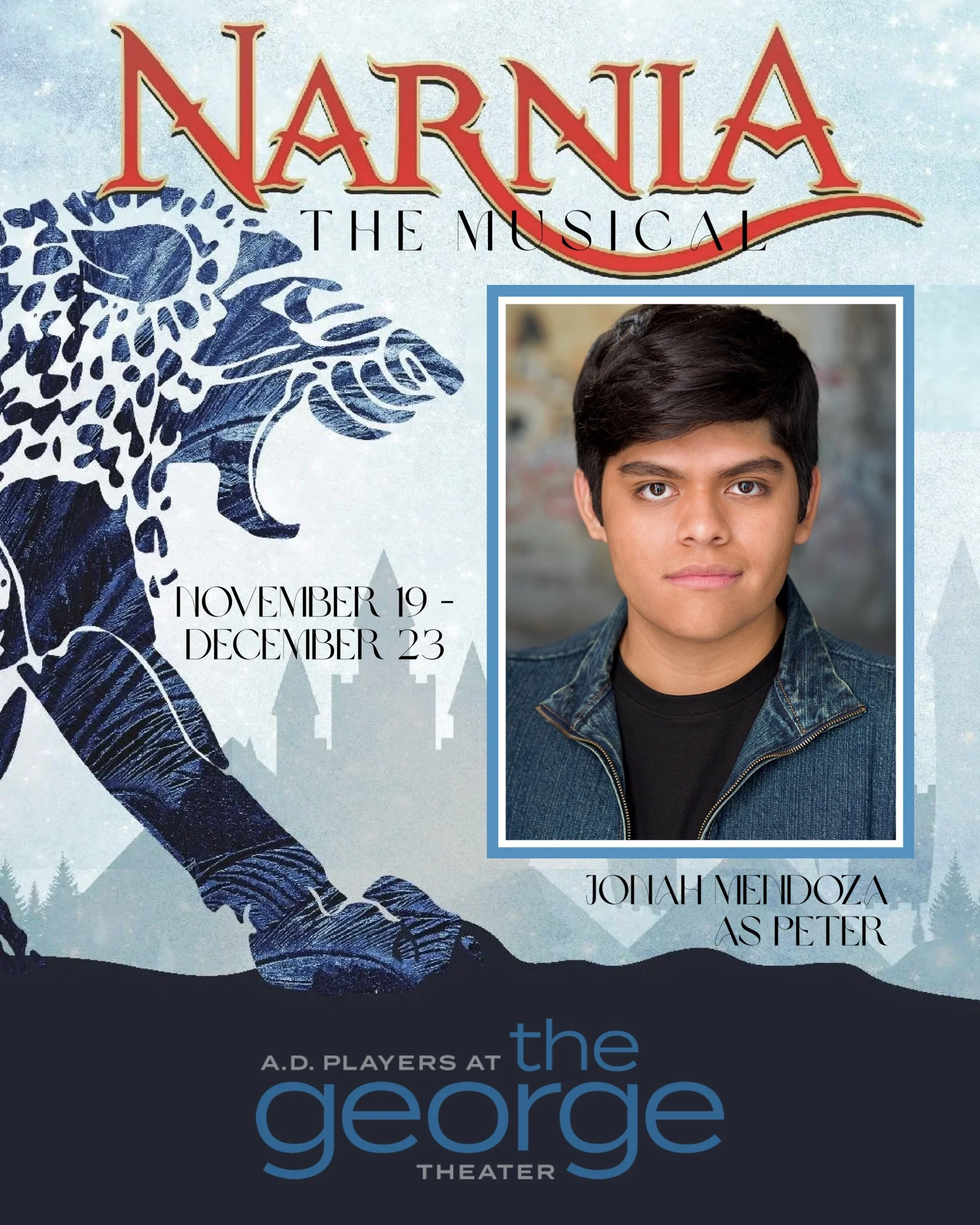 This upcoming October, Jonah begins rehearsal for A.D. Players’ upcoming production of Narnia, where he will star as Peter Pevensie. He is beyond excited to be making his A.D. Players Theater debut this winter.