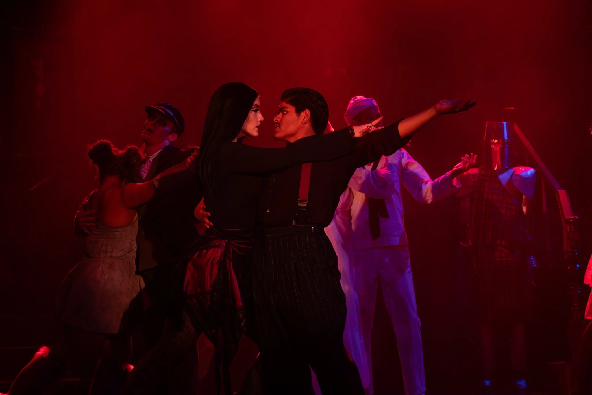 “Gomez Addams, played by Jonah Mendoza, keeps this show moving superbly, with a mix of debonair attitude and sly humor. Acting, singing, dancing… he does it all!”